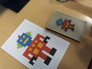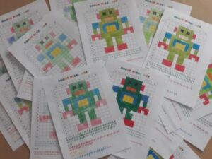 U prvom su dijelu aktivnosti učenici diskutirali gdje se susreće umjetna inteligencija u svakodnevnom životu,… Primijećeno je da uglavnom poistovjećuju pojam umjetne inteligencija s robotima. Što roboti mogu, kako… neka su od pitanja koja su pokušali odgovor. Učenici su povezivali parove (različitih sličica robota) u zadatku izrađenom u online aplikaciji Learning Apps. Nakon toga su rješavali puzle s temom robota. Učenici četvrtih razreda jednostavno obožavaju Sudoku pa su riješili Sudoku na temu robota. Dobili su dva zadatka s robotima njima omiljenom metodom pixelart-a. U prvom zadatku, učenici su morali popuniti kvadratiće bojama navedenim u zadatku (slika pixela od različite boje su prikazivale robota), a u drugom su zadatku zajednički izradili sliku jednog robota bockalicama (po jedan red za svakog učenika) prema pripremljenoj slici).