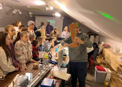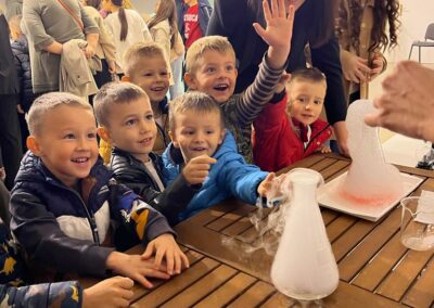 U četvrtak 9. studenoga 2023. godine, u sklopu Festivala znanosti Sinj, održana je radionica pod nazivom “Fizika u planini“. Radionica je bila namijenjena najmlađima – djeci iz vrtića i učenicima četvrtih razreda. Cilj radionice bio je približiti djeci osnove fizikalnih procesa kroz kreativnu priču o Albertinu i njegovome putovanju. Radionica je donijela mnogo smijeha i veselja, najmlađima, ali i starijima.Ova radionica ne bi bila moguća bez predanosti i truda učitelja i učenika.