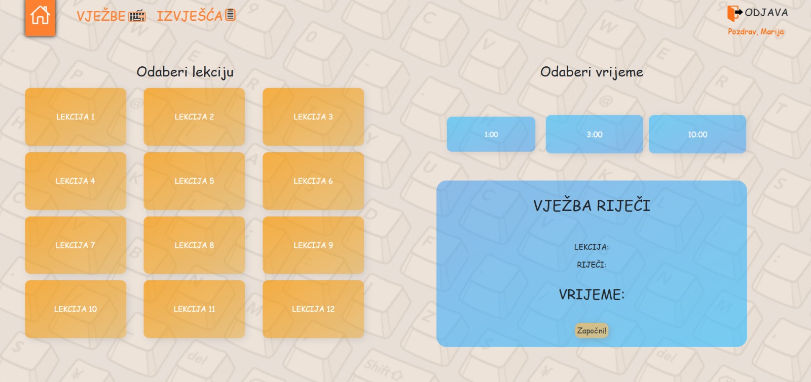- praćenje brzine i točnosti tipkanja u realnom vremenu,