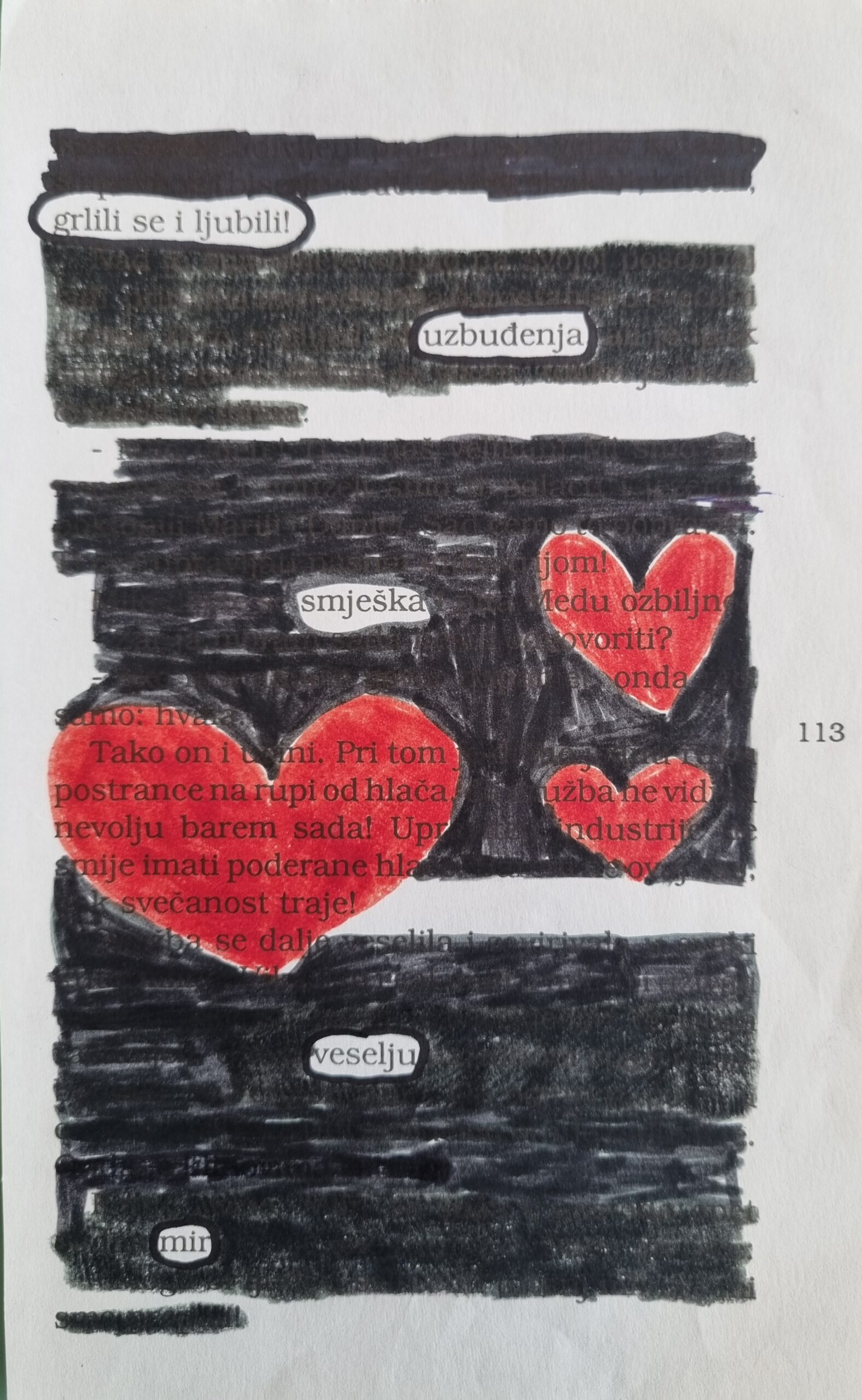 U skladu s mjesečnom temom te u susret Valentinovu, čitajući tekstove Prvo ljubavno pismo i Prvi sudar, učenici 6. razreda dobili su stvaralački zadatak – izraditi blackout poeziju na temu zaljubljenosti i ljubavi.