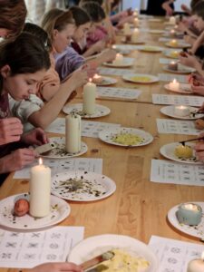 Učenici četvrtaši koji njeguju likovnu umjetnost i upoznati su s mnogim tehnikama imali su zadatak naučiti nešto novo. Osim same tehnike, bilo je potrebno pratiti i tradicijske motive koji su se prenosili na pisanice. Zapalili su svijeću i u držalo stavili istrugane komadiće voska. Držalo su zagrijavali dok se voskom nisu mogle stvarati strukture po ljuski jaja. Za ovaj rad bilo je potrebno mnogo strpljenja, preciznosti i usmjerene pažnje. Išarana jaja stavili su u posudu s bojom gdje su se kuhala 15 minuta. S ohlađenih jaja ostrugali su vosak te otkrili kako su mjesta koja su išarali voskom ostala svijetla, a ostatak jajeta bio je obojan.