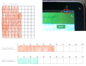 Od svih aktivnosti usmjerenih na optimizaciju rada uređaja najuspješnijom se i najkorisnijom pokazala aktivnost praćenje stanja baterije digitalnog uređaja! Već su se od prvih dana prvog razreda dogovorili kako će učenici na kraju nastavnog sata ili dana osim već navedenog, pogledati i stanje baterije koje je najčešće prikazano dvoznamenkastim brojem u gornjem desnom kutu ekrana. Učenici su bili dužni zapamtiti taj broj, pa tek iza toga ugasiti uređaj. Dok su bili prvaši dvoznamenkasti su broj pamtili kao dva uzastopna jednoznamenkasta broja. Kako su učenici rasli, a time se širio i skup brojeva koji su učili iz matematike, učenici su pamtili dvoznamenkaste brojeve onako kako se pravilno pišu tj. izgovaraju. Taj podatak je bio važan jer su na taj način učenici naučili odvajati uređaje koji su dovoljno napunjeni za idući nastavni dan od onih koji su zahtijevali punjenje već istog dana: a to su tableti na kojima je razina napunjenosti baterije pala ispod 30%. Učenici koji su imali teškoće sa usvajanjem pojma broja i pojma količine te učenici koji su teško usvajali pojam prethodnika i sljedbenika, tom su aktivnošću prevladali taj problem.