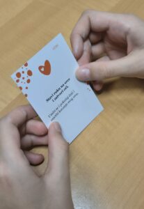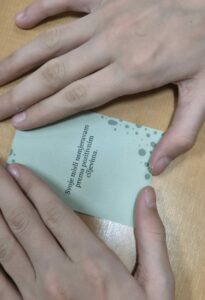 Nakon razgovora, učenici su sudjelovali u raznolikim aktivnostima iz igre Kartice bezbrigice, kroz koje su istraživali vlastite osjećaje i vježbali empatiju kroz pokret i igru. Izvodili su vježbu “Krila leptira”, u kojoj su povezivanjem stopala i laganim podizanjem koljena poticali smirenost i osluškivanje vlastitog tijela; “Zagrljaj za sebe”, nježan i kratak zagrljaj usmjeren na jačanje osjećaja sigurnosti i brige o sebi; te “Ogledalo emocija”, u kojem su promatranjem svoga odraza pokušavali prepoznati i razlikovati različite emocije. Poseban smijeh i veselje izazvala je vježba “Kokica skokica”, gdje su učenici izvodili lagani čučanj i skočili u zrak poput kokice koja puca, potičući pri tome razigranost i slobodu pokreta.