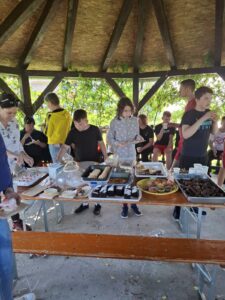 Dan je započeo u veselom i opuštenom tonu – uz pjesmu i ples u školskom dvorištu. Učenici su s osmijehom sudjelovali u brojnim aktivnostima, dok su tate preuzeli roštilj, a mame, bake i ostali članovi obitelji donijeli domaće kolače. Nakon roštilja svi su zajedno uživali u kolačima, druženju i glazbi.