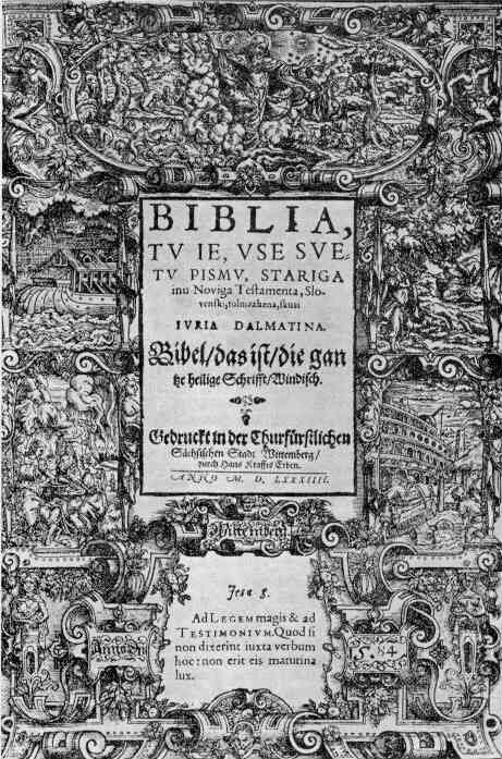 Tada su Slovenci dobili prvi slovensku knjigu, prvi pravopis i prvi prijevod Biblije. Bibliju je preveo Jurij Dalmatin. Rođen je u Krškom 1547. godine, umro je u Ljubljani 1589. godine, a ime dijeli s hrvatskim graditeljem šibenske katedrale.