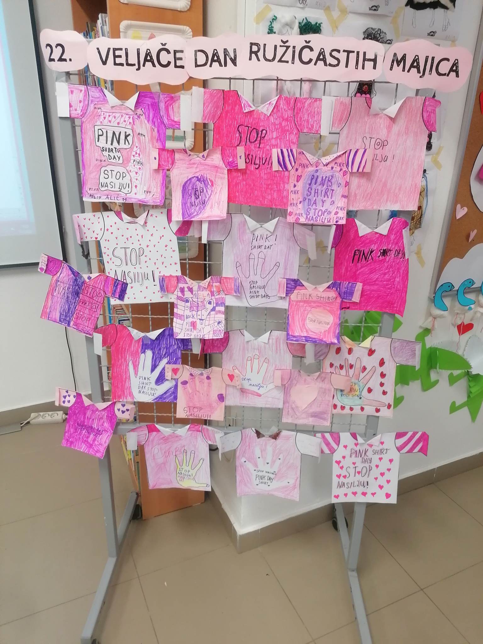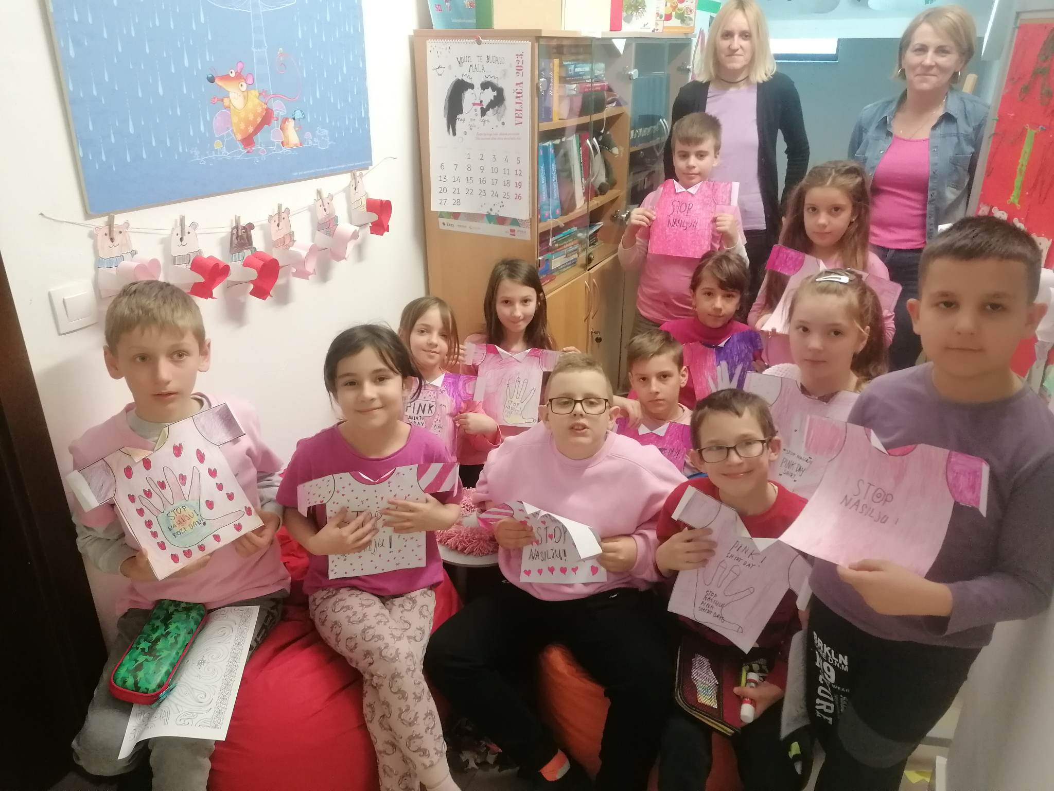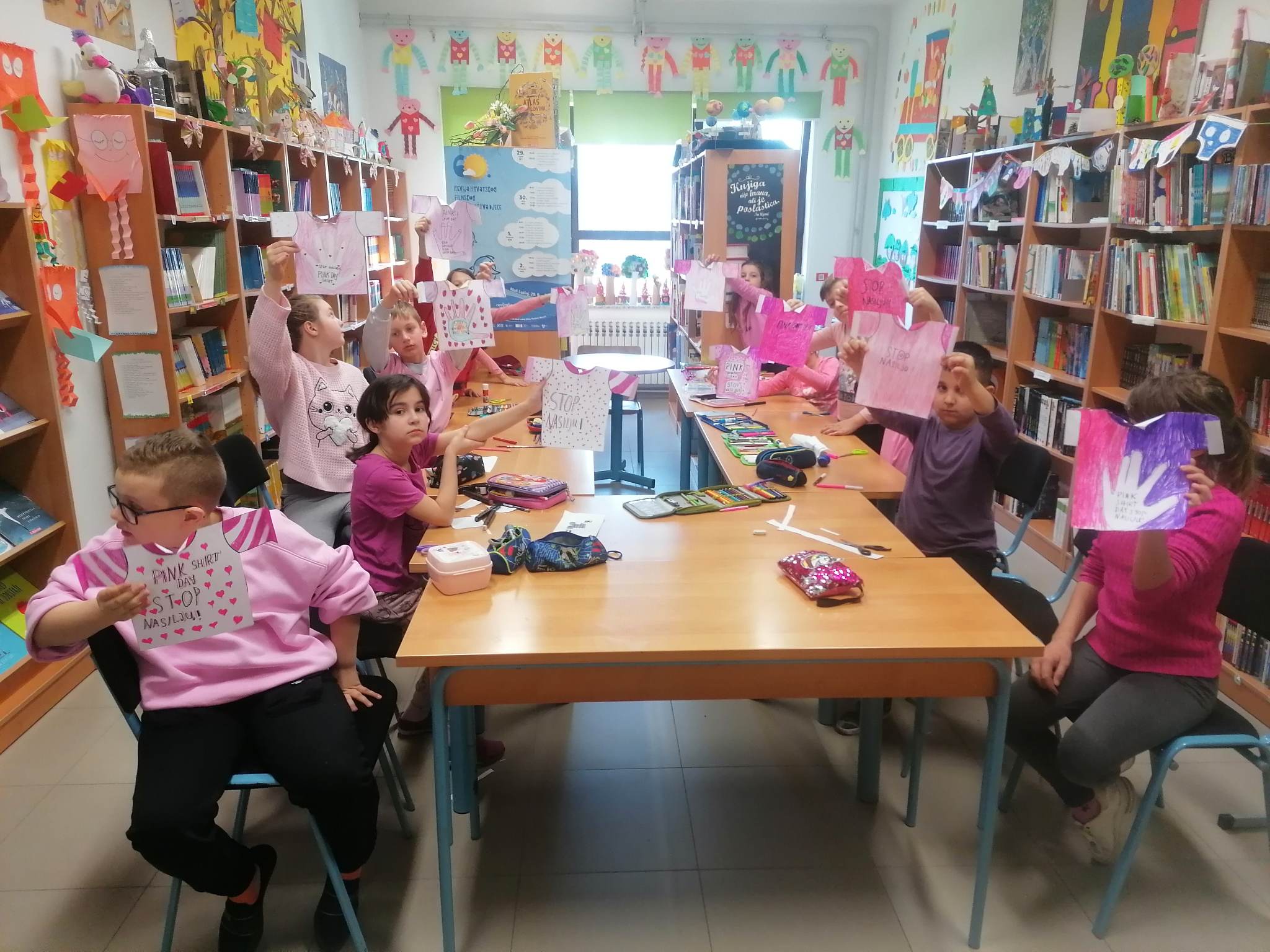 Svi učenici 1. a i 3. a razreda zajedno s učiteljicama i knjižničarkom za ovu prigodu došli su u školu u roza majicama.