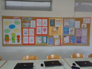 U tjednima prije Dana sigurnijeg interneta u sklopu nastave informatike učenici četvrtog razreda upoznali su alat Canva i izradili svoje prve digitalne postere na temu Oprezno na internetu. Učenici 5.b razreda izradili su postere na temu Prednosti i nedostaci uporabe računalnih tehnologija, također u alatu Canva. Učenici šestog razreda bavili su se temama digitalni tragovi, elektroničko nasilje i internet bonton. Upoznali su alat WordArt i izradili oblake riječi digitalni tragovi, a u alatu Canva postere na temu Internet bonton. Odabrani radovi izloženi su na panou u informatičkoj učionici.