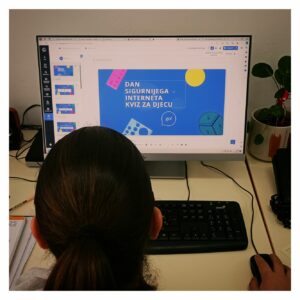 Učenice 7. razreda koje su članice Vijeća učenika ovaj su dan obilježile u centralnoj školi, i to u sklopu etwinning projekta “Na putu dobrote 5“. Pripremile su šarene listiće sa slikama kompjutera na koje su dodale QR kod koji je nakon skeniranja vodio do interaktivne prezentacije izrađene na online platformi Prezi. Prezentaciju su izradile uz pomoć pedagoginje, a sadržavala je savjete za sigurno korištenje interneta za djecu i roditelje, informacije o lozinkama, digitalnom otisku i nasilju na internetu te kvizove za roditelje i učenike izrađene u online alatu Genially. Šarene listiće po školi su zalijepile učenice 2. razreda, kako bi QR kod mogli skenirati svi zainteresirani – učenici, učitelji, roditelji.