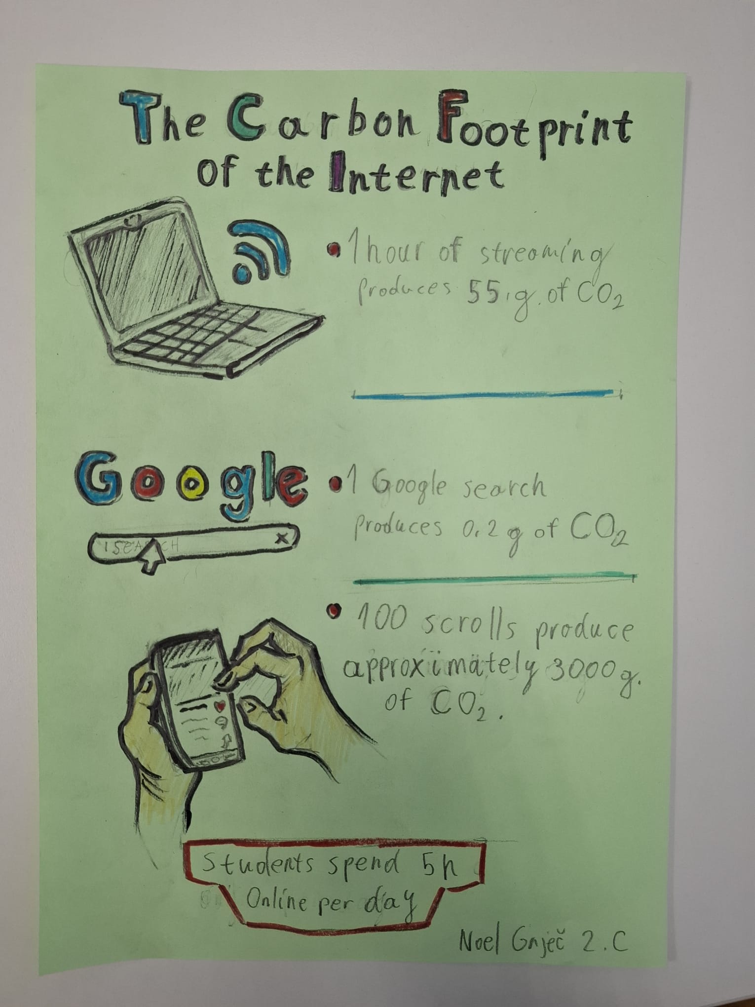 Ovakav pristup temeljen na podacima omogućio im je da prepoznaju koje digitalne aktivnosti imaju najveći utjecaj na planet. Učenici su u fizičkim i virtualnim aktivnostima koristili iste radne listove, ali su rezultate predstavili na različite načine.