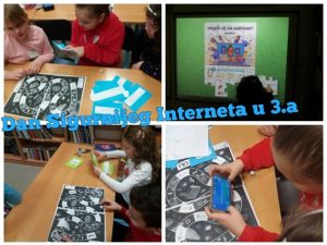 Nakon što su složili puzzle i pronašli rješenje u obliku plakata, učenici su nastavili igrati igru koju su preuzeli s mrežne stranice Centra za sigurniji internet, u kojoj su provjeravali znanje o zaštiti u svijetu interneta i mobilnih telefona. U jednom dijelu, imali su zadatak odgovarati na pitanja, a u drugom crtati zadani pojam. Učenicima se igra jako svidjela. Osim društvene igre, knjižničarka ih je uputila da mogu odigrati igru Interland gdje rješavajući pitanja skupljaju bodove i mogu dobiti certifikat.