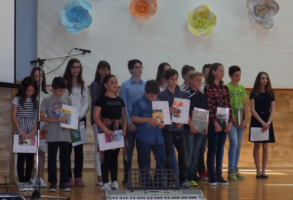 Najuspješnijim učenicima koji su postigli zapažene rezultate na županijskim i međunarodnim natjecanjima i na likovnim natječajima, ravnatelj škole mr.sc. Alen Vokas uručio je Pohvalnice i nagrade.