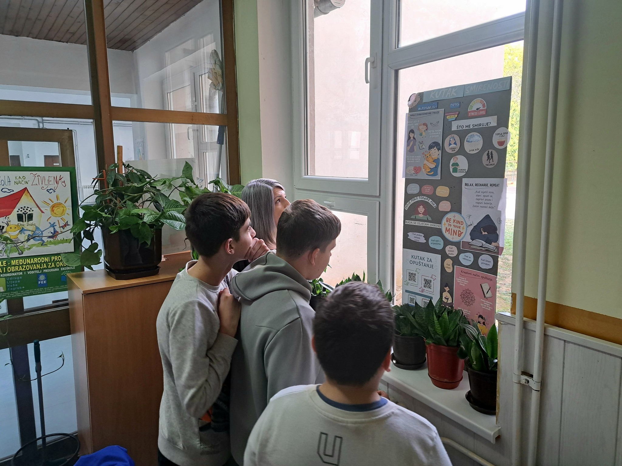 Učiteljica Silvija Švelinger s osmašima u Kneževu osmislila je „Kutak smirenosti“ – plakat s porukama o tome što učenicima pomaže kad su pod stresom, obogaćen QR kodovima koji vode do kratkih mindfulness vježbi. Aktivnost je inspirirana iskustvima s njezine mobilnosti na Tenerifima.