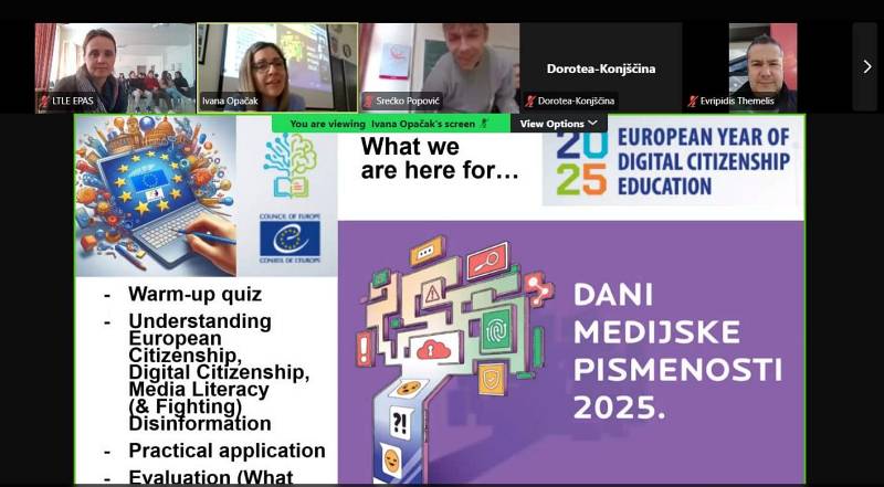 Ivana Opačak, nastavnica Hrvatskoga i Engleskoga jezika te koordinatorica programa Škola ambasador EP-a (EPAS) organizirala je 28. ožujka 2025. fizičku radionicu na engleskome jeziku „Understanding European Digital Citizenship“ za učenike Osnovne škole „Hugo Badalić“ Slavonski Brod i njihove Erasmus-goste iz mađarske Osnovne škole „Cserepka Iskola“ Pečuh. Radionica je registrirana kao prvi dio javnoga događanja u okviru nacionalne manifestacije Dani medijske pismenosti. Na radionici su sudjelovali učenici 1. e i 2. c razreda Ekonomsko-birotehničke škole škole, koji su tako s gostima dali doprinos obilježavanju Europske godine obrazovanja za digitalno građanstvo (2025.).