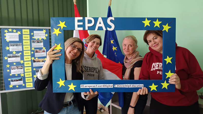Tijekom ožujka i travnja 2025. prof. Opačak sudjelovala je u četverotjednom online tečaju „Teach Europe: A Classroom’s Roadmap to Europe“ na platformi European Schoolnet Academy. U ožujku su obrađeni moduli „Europe in my classroom“, „Europe in daily life“, „Teaching for active citizenship“ i „Looking at the future“, a u travnju su sudionici imali priliku izraditi i vrednovati vlastite obrazovne scenarije (kao i tri scenarija kolega diljem Europe). Gotovo svi nastavnici (iz Grčke, Rumunjske i Hrvatske) koji surađuju na eTwinningovu projektu „EPASsionates“ završili su ovaj tečaj i upravo su njihovi suradnički obrazovni scenariji predstavljeni i vrednovani tijekom procesa učenja.