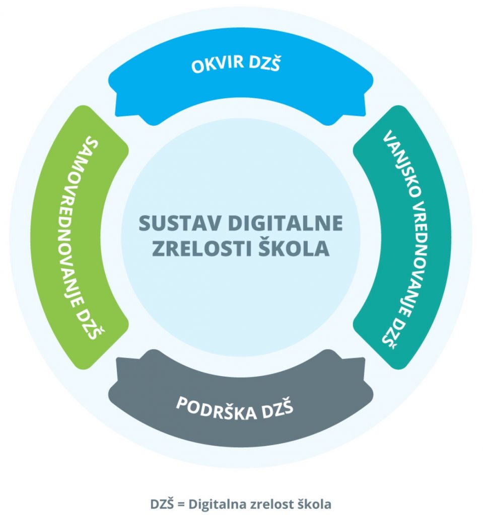 Okvir za digitalnu zrelost škola prvi je korak na koji se nadovezuju drugi elementi sustava digitalne zrelosti škola u programu e-Škole, a koji se razvijaju u skladu s okvirom za digitalnu zrelost škola: