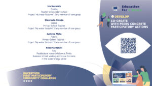 Projekt My Water Footprint prepoznat je od Europske komisije još početkom 2021. godine te je učiteljica Iva Naranđa pozvana u grupu učitelja koja je od ožujka 2021. volonterski radila u koaliciji „Obrazovanje za klimu”, vodećoj inicijativi europskog prostora obrazovanja s ciljem podupiranja pravedne, zelene i digitalne društvene tranzicije. Tijekom više online sastanaka, radionica i događanja dijelila je svoja iskustva s europskim učiteljima, studentima i sudionicima u području obrazovanja na svim razinama. Sve to dovelo je do prvog Dana obrazovanja za klimu i pokretanja platforme za suradnju.