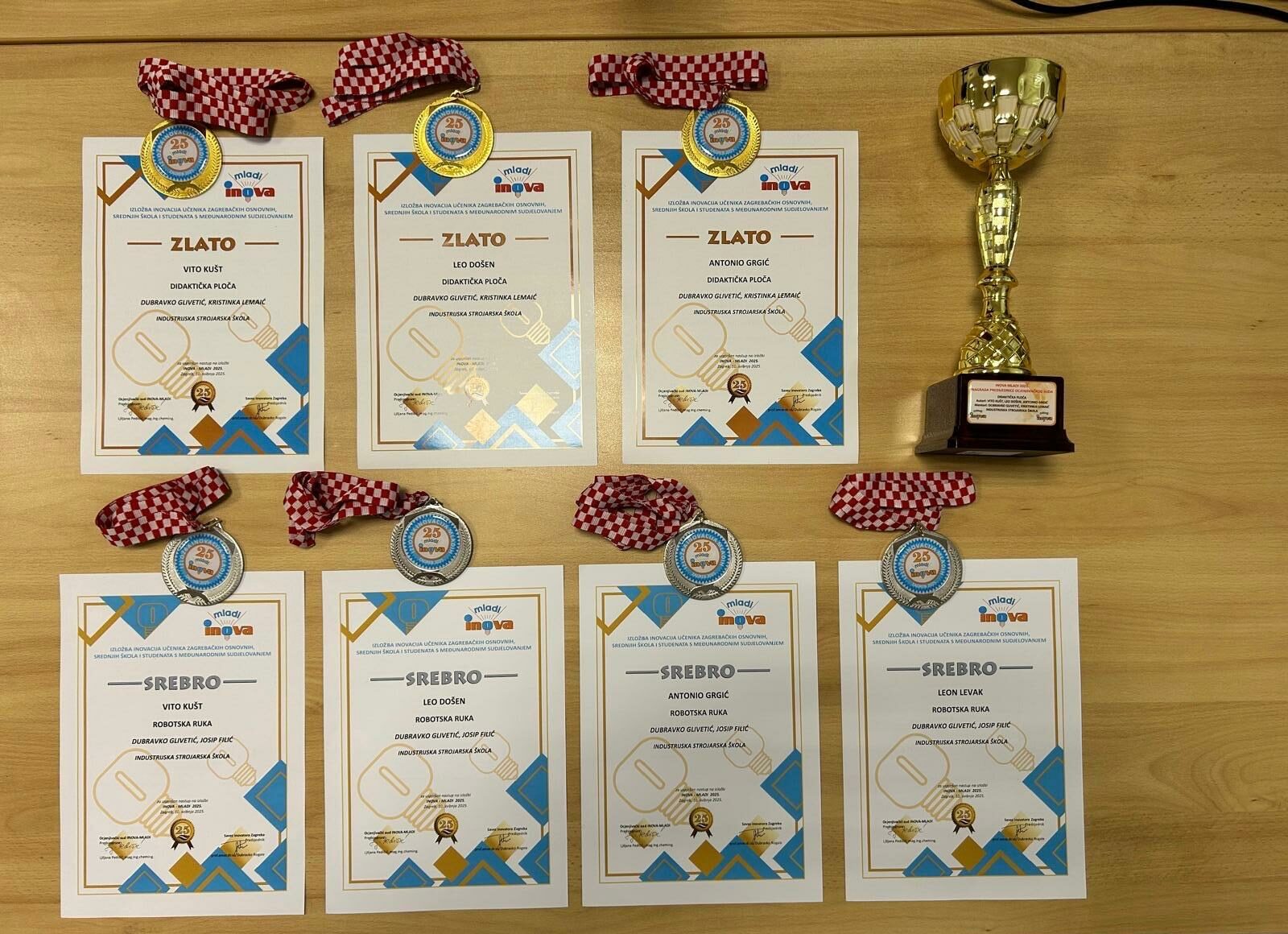 Na jubilarnom 25. izdanju izložbe INOVA-MLADI, najveće smotre mladih inovatora u Republici Hrvatskoj, učenici Industrijske strojarske škole iz Zagreba ostvarili su izniman uspjeh osvojivši zlatnu i srebrnu medalju, a rad “Didaktička ploča” dodatno je nagrađen i posebnom nagradom predsjednice ocjenjivačkog suda.