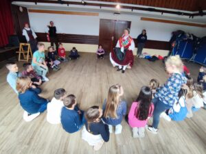 Drugi dan mobilnosti su proveli u partnerskoj školi gdje su domaćini pripremili priredbu dobrodošlice čiji se program sastojao od raznih i zanimljivih glazbenih, scenskih te plesnih nastupa. Tako se na priredbi mogla čuti i bohinjska himna te vidjeti dramska točka o tome kako je Bohinj dobio ime. Tom prigodom su učenici iz Osijeka održali prezentaciju o Hrvatskoj i otpjevali slovensku narodnu pjesmu.