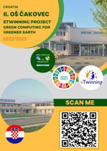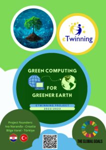 Ovim projektom željelo se učenike upoznati s zelenim računalstvom kao velikim korakom u ublažavanju onečišćenja okoliša i utjecaja klimatskih promjena. Kroz projektne aktivnosti učenici su trebali shvatiti da je održivi razvoj povezan s zelenim računalstvom. Zeleno računalstvo važan je aspekt rasprava koje uključuju zaštitu okoliša, zelenu energiju, klimatske promjene i održivi razvoj, a zajednički je cilj prakticirati i postići ekološki prihvatljivu primjenu i korištenje ICT-a u društvu. Zeleno računalstvo pokretač je održivog razvoja jer su njegove prakse i načela usmjereni na čišći, sigurniji i održivi okoliš koji promiče dobrobit čovječanstva i našeg planeta. Osim upoznavanja s zelenim računalstvom, projektne aktivnosti omogućile su učenicima razvijanje vještina engleskog jezika i učinkovitog korištenja tehnologije za suradnju. Na početku projekta na TwinSpace forumu učiteljice su dogovorile pravila e-sigurnosti koja će se primjenjivati tijekom ovog projekta. Dogovorena pravila prikazana su na dvodijelnom posteru. Uvodna aktivnost za učenike sastojala se od stvaranja oblaka riječi u alatu WordArt i prenošenja vlastitih radova na zajednički Padlet. Oblaci riječi sastojali su se od naziva eTwinning projekta i imena država sudionica ovog projekta.