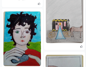 Sljedeća aktivnost je bila izrada ilustriranih karata u nekom digitalnom alatu ili uz pomoć neke likovne tehnike na papiru. Radovi su izuzetno kreativni te je zanimljivo vidjeti kako su učenici istaknuli pojedine dijelove priče koji su ih se posebno dojmili. Kreativne radove možete vidjeti ovdje.