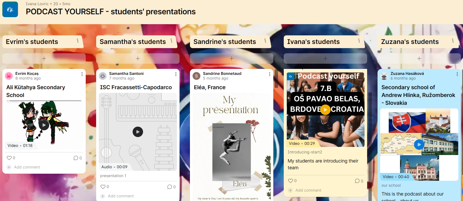 Međutim, upravo u toj “prevlasti” slike, glas dolazi do izražaja. Vođene tom idejom, deset učiteljica iz šest europskih zemalja – Španjolske, Italije, Francuske, Hrvatske, Turske i Slovačke – osmislile su eTwinning projekt Podcast Yourself, koji je okupio 122 učenika u dobi od 12 do 14 godina. Osnovna škola “Pavao Belas” je u projektu sudjelovala s 20 učenika, a učiteljica engleskog jezika Ivana Lovrić je zajedno s učiteljicom iz Francuske i suosnivač projekta.
