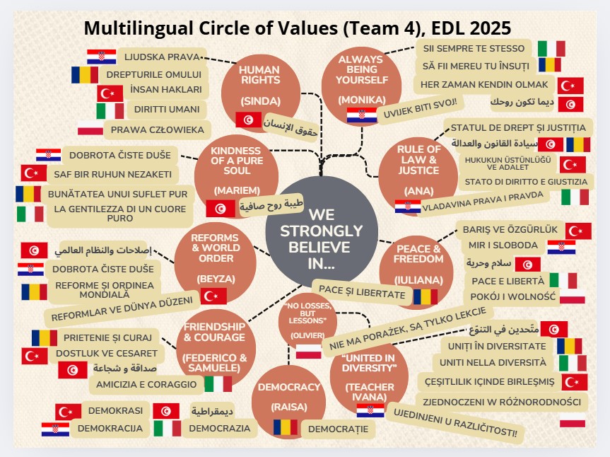 Prve projektne aktivnosti bile su posvećene upoznavanju partnera i obilježavanju Europskoga dana jezika (u rujnu 2025.) i Dana Erasmusa. Tim su povodom učenici izradili “karte/zidove/krugove ljudskih vrijednosti” na engleskome jeziku i jezicima uključenih partnera – rumunjskome, turskome, hrvatskome, poljskome, talijanskome i arapskome.