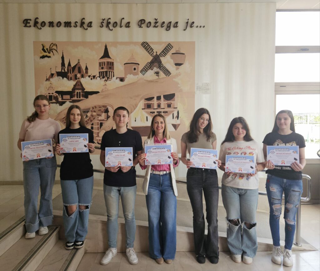 Učenici Ekonomske škole Požega koji su bili aktivno uključeni u ovogodišnji projekt su: Matea Majstorović, Lamia Sabo, Helena Džomba, Petra Petrović i Luka Čuljak iz 3.h razreda te Teo Lehner, Lovro Čuljak i Filip Pelić iz 3.c razreda.