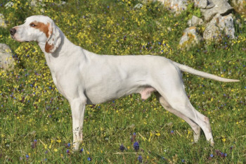 Visina u grebenu odrasle jedinke iznosi 45 do 55 centimetara, težine oko 18 kilograma. Glava mu je izdužena, kruškolika oblika, uši poklopljene, vrat srednje dug. Dlaka mu je sjajna i tvrda na dodir, bijele boje. Ima karakteristične smeđe narančaste fleke na području glave (ponekad se takva obojanost može naći i na drugim dijelovima tijela u vidu pjegica ili sitnijih točkica). Rep je tanak i blago savijen prema gore. Kad laje glas mu je visok i zvonak te se ga može izdaleka čuti.
