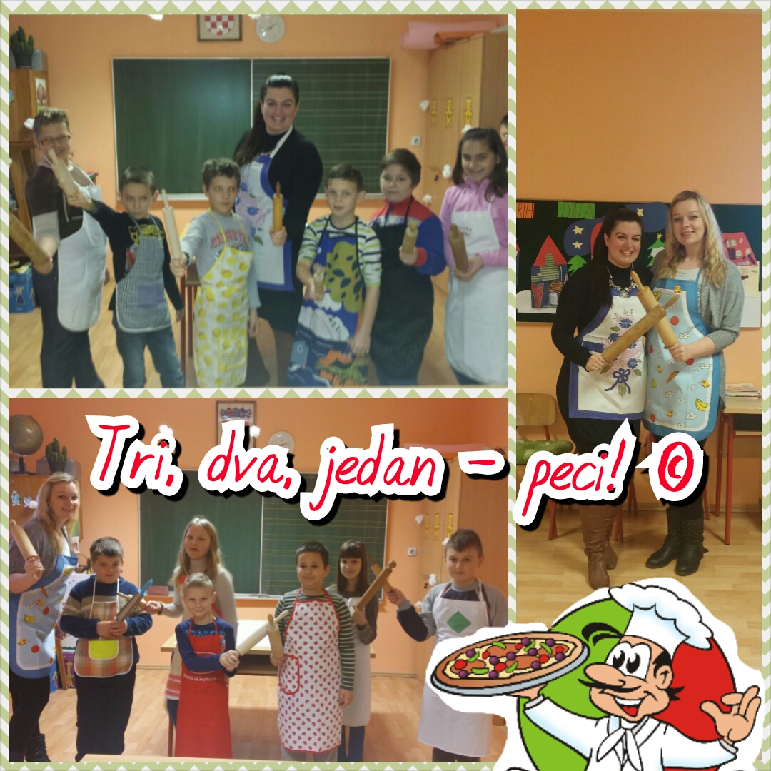 Dan je započeo radionicom u kojoj su učenici na temelju vlastitog iskustva i uz pomoć svojih učiteljica i kuharice naučili napraviti tijesto za pizzu. Nakon kratkih uputa i promatranja načina rada, učenici su podijeljeni u dvije skupine (1. i 3. razred, 2. i 4. razred) sa zadatkom da što prije i što bolje samostalno zamijese tijesto za pizzu koju će naknadno nadjenuti.