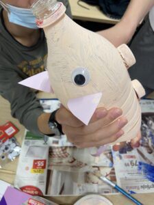 Prva aktivnost bila je na satu predmeta Društveno odgovorno poslovanje. Učenici su od recikliranih materijala izrađivali kasice – prasice. U izradi su koristili stare odbačene plastične boce koje su bojali akrilnim bojama i ukrasili raznim dodatcima. Upravo postupkom recikliranja, pokazali su kako se može utjecati na smanjenje otpada i ograničavanje potrošnje što je jedna od temeljnih značajki održivog razvoja.