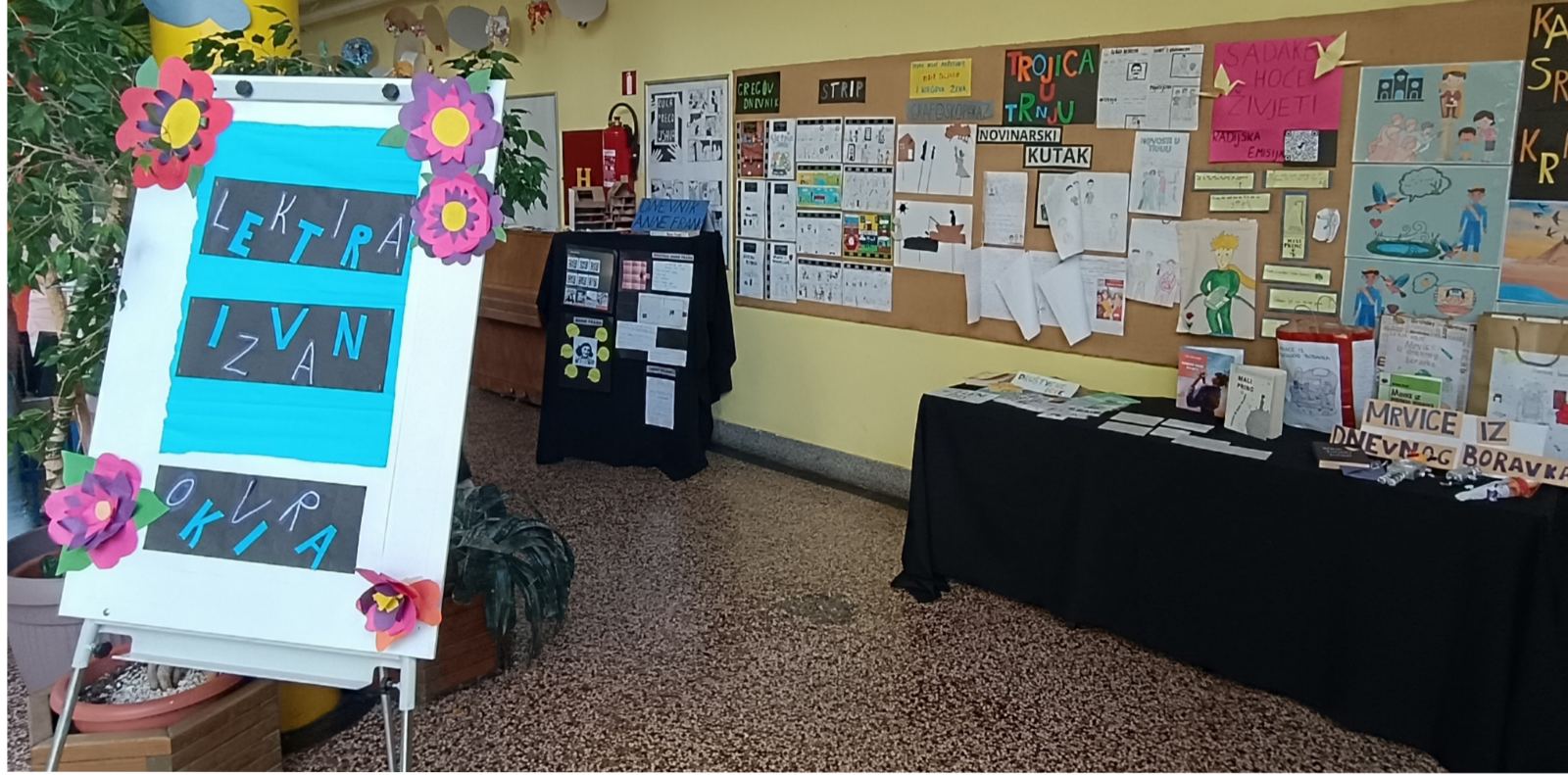 Izloženi su radovi učenika 6. i 8. razreda koji su lektirna djela pretvorili u razigrane, interaktivne i vizualno dojmljive radove, a učenike je usmjeravala učiteljica Hrvatskoga jezika Maja Farkaš.