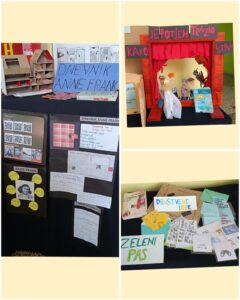 Kroz kamišibaj tehniku pripovijedali su suvremenu bajku Sretni kraljević za koju su sami stvarali likovne predloške u digitalnom alatu Canva. Pozornost je privukla i lektira u vrećici s elementima iz djela Mrvice iz dnevnog boravka te lutkarska izvedba Kako je Potjeh tražio istinu. Izložbu upotpunjuju plakati i trodimenzionalno tajno sklonište iz knjige Dnevnik Anne Frank kao i originalne društvene igre temeljene na romanu Zeleni pas.