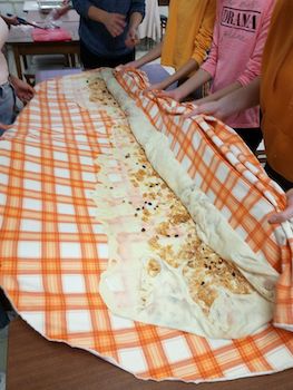 Učenici su uz pomoć učiteljica razrednica Virne Pavletić, Lorene Vlahović i Kristine Mijandrušić Ladavac pripremili sastojke, gulili i rezali povrće i jabuke, mijesili tijesto, razvlačili ga i rolali. Nije bilo trenutka odmora i svi su odradili svoj dio zadatka. Dečki koji su sudjelovali u razvlačenju vučenog tijesta iz prve ruke dijele savjet: ako nekim slučajem pogriješite u koracima pri rastezanju tijesta, nemojte ga opet umijesiti u lopticu jer se ono više neće rastezati.