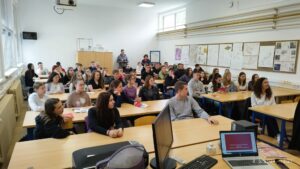 Nastavnici iz Španjolske održali su i predavanje za zainteresirane učenike smjera arhitektonski i građevinski tehničar na kojem su predstavili španjolski obrazovni sustav, svoju školu, projekte koje rade s učenicima, kao i dvije studentice Naydelin Valarezo Duran i Kaoutar Dian Aharmouch koje već mjesec dana obavljaju stručnu praktičnu nastavu u organizaciji hrvatske škole. Njih je i posjetila Elena Pliego de Andrés kako bi se uvjerila u njihov rad i napredak.