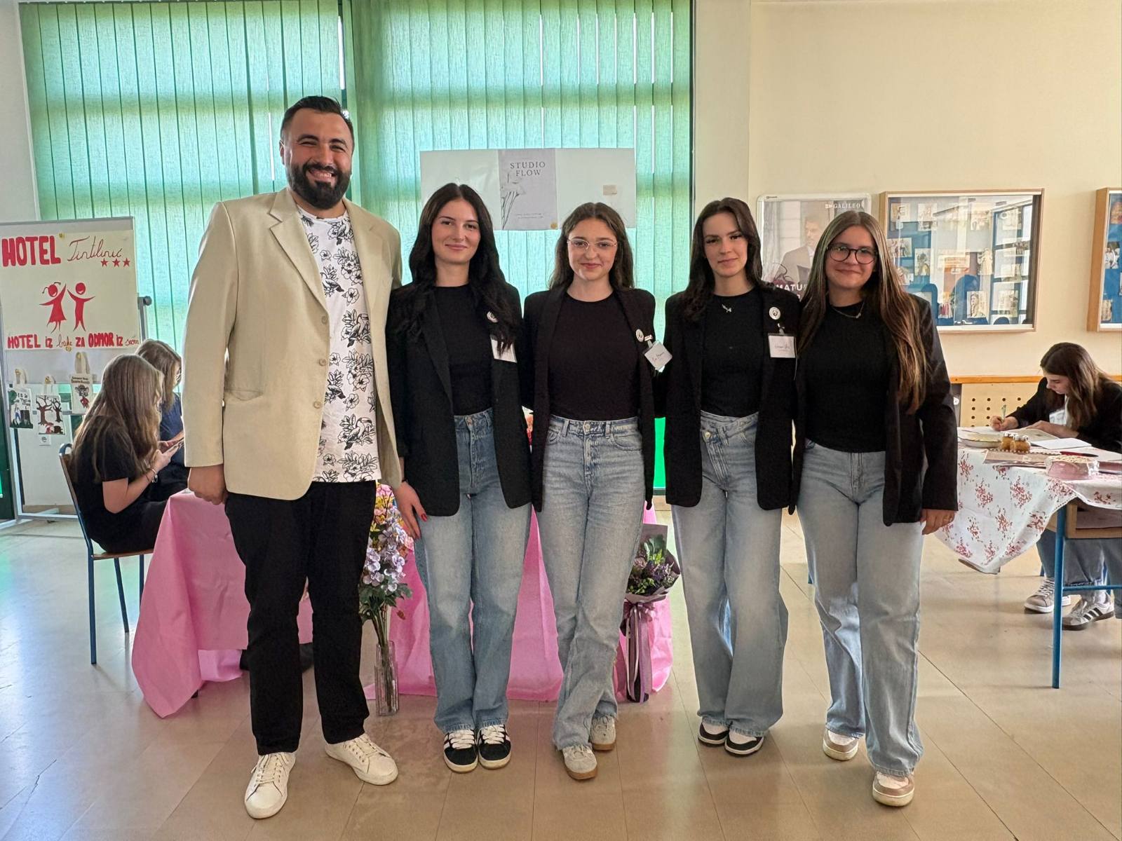 U petak, 17. travnja 2026. godine, u Ekonomsko-birotehničkoj školi Slavonski Brod održan je Sajam vježbeničkih tvrtki u sklopu Dana otvorenih vrata, koji je izvrsno organizirala kolegica Valentina Bodrožić-Selak, nastavnica ekonomske grupe predmeta (više o Sajmu vježbeničkih tvrtki pročitajte na linku: https://ss-ekonomsko-birotehnicka-sb.skole.hr/?p=309627). Sajam je imao i natjecateljski karakter – svi učenici i nastavnici škole glasali su za jednu vježbeničku tvrtku po vlastitom izboru. Rezultati su bili izvrsni: Cvjetni studio Flow osvoji je 2. mjesto, a Stari Ključ 3. mjesto.