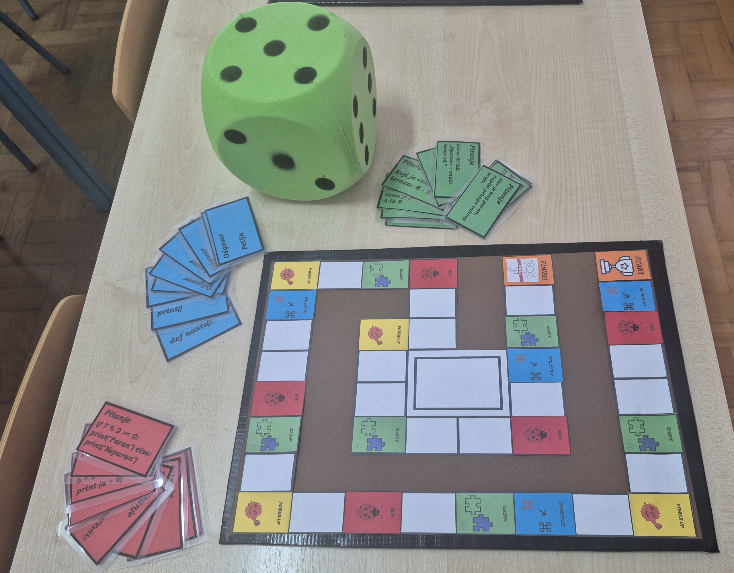 Cilj aktivnosti bio je približiti osnove programiranja kroz društvenu igru koju su učenici uz pomoć nastavnice osmislili, izradili i isprobali. Igra je rezultat rada nastavnika i učenika koji su spojili kreativnost i informatičko znanje u jedan zabavan i edukativan proizvod.