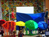 Nakon pauze krenule su pripreme za prezentaciju koja je planirana za 11 sati i 30 minuta. Taj je dio uvijek pun uzbuđenja i iščekivanja jer se sudionici žele pohvaliti svojim uraccima i pokazati ih u najboljem svjetlu. I zaista, uživali smo u rasplesanim kišobranima, istuširanim plakatima, novonastalim stihovima i pjesmama, plesnim pokretima inspiriranim bogatstvom boja… A sve smo to mogli promatrati iz udobnosti netom izrađenog i stilski dotjeranog namještaja.