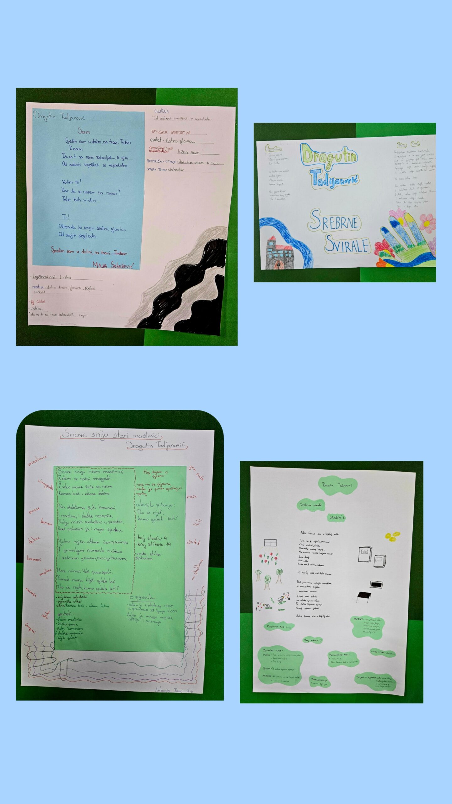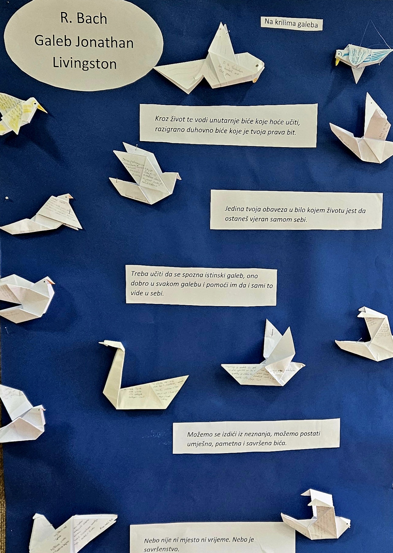 Sličan kreativni pristup učenici su primijenili i u obradi drugih lektirnih djela. Lektiru Galeb Jonathan Livingston Richarda Bacha obradili su kroz likovne i pisane radove kojima su izražavali osobni doživljaj slobode, snova i upornosti. Kreativnu obradu zbirke pjesama Dragutina Tadijanovića, Srebrne svirale, učenici su prikazali vizualizacijom pjesama i izradom plakata koji spajaju riječi, boje i simbole. Na taj se način lektira doživljava na maštovit i osoban način, a čitanje postaje kreativno istraživanje. Ovakav način rada omogućio je učenicima da lektiru dožive na osobniji i zanimljiviji način.