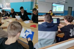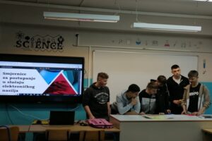 Profesorica Ana Marketin-Sedlar Dan sigurnijeg interneta obilježila je s učenicima prvoga razreda zanimanja strojarski računalni tehničar kroz međunarodne eTwinningove projekte “Pink Shirt Day 2024!” i “LET’S LOVE THE MEDITERRANEAN SEA”. Kako se projekt “Pink Shirt Day 2024!” bavi temom međuvršnjačkog nasilja, učenici su Dan sigurnijeg interneta posvetili temi cyberbullyinga. Tijekom sata razrednika, kroz radionicu osmišljenu na metodi šest šešira, učenici su analizirali istinite događaje njihovih vršnjaka. Podijeljeni u grupe, učenici su iznosili činjenice prema bojama šešira te su kao završnu aktivnost kreirali plakat.