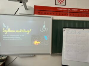 Učenici su dobili zadatak istražiti učinak svjetlosnog onečišćenja na naš planet. Prikupljali su informacije o različitim vrstama svjetlosnog onečišćenja, poput nebeskog sjaja ili Skyglow, svjetlosnog prijelaza te utjecaja odsjaja. Skyglow je osvjetljenost prenaseljenih područja noćnog neba, dok je odsjaj pretjerana svjetlina koja uzrokuje nelagodu i smanjuje vidljivost. S druge strane, svjetlosni prijelaz je neželjeno svjetlo koje ulazi u naše domove i remeti naše obrasce spavanja.