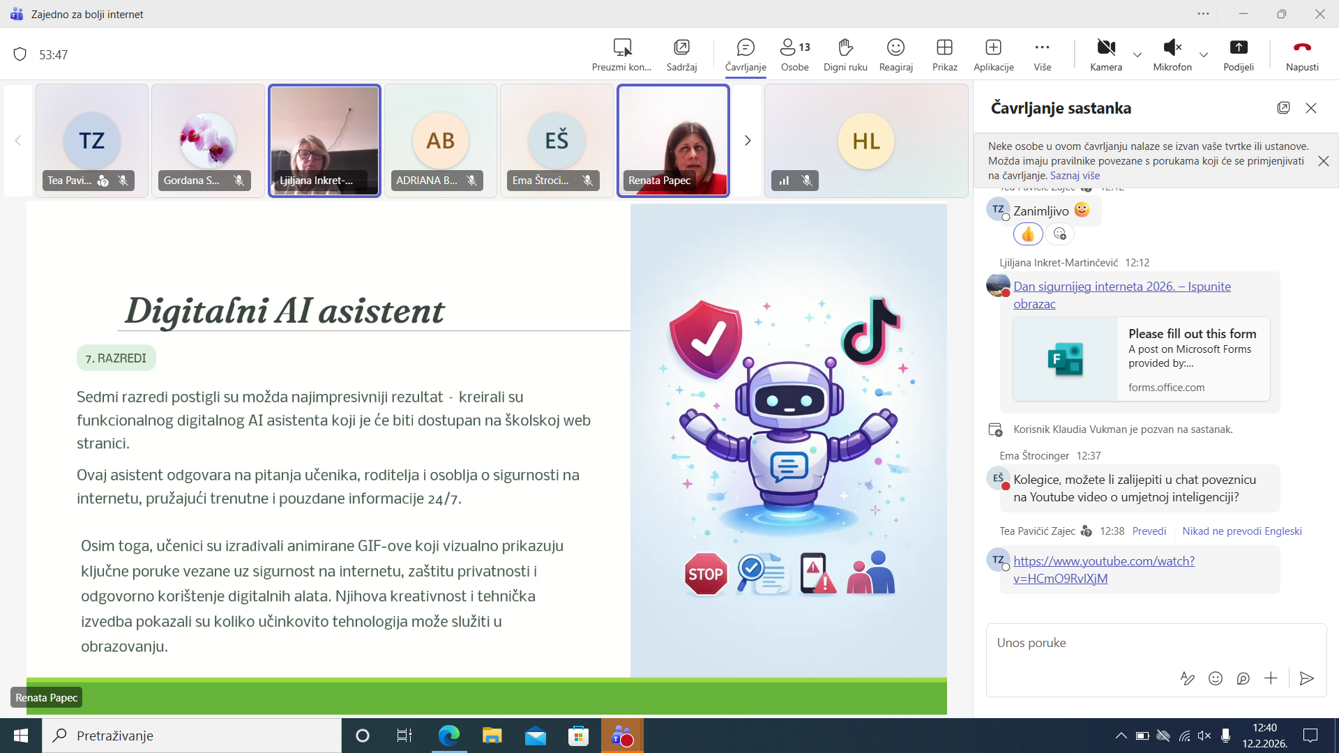 Osim glavne teme kako što sigurnije i odgovornije koristiti internet, predstavljena su i kritička promišljanja o budućnosti umjetne inteligencije te donošenje ispravnih odluka. Raspravljalo se o etičkim izazovima UI-a, važnosti zaštite podataka te o tome kako razvijati smjernice za sigurnu i odgovornu upotrebu novih tehnologija.