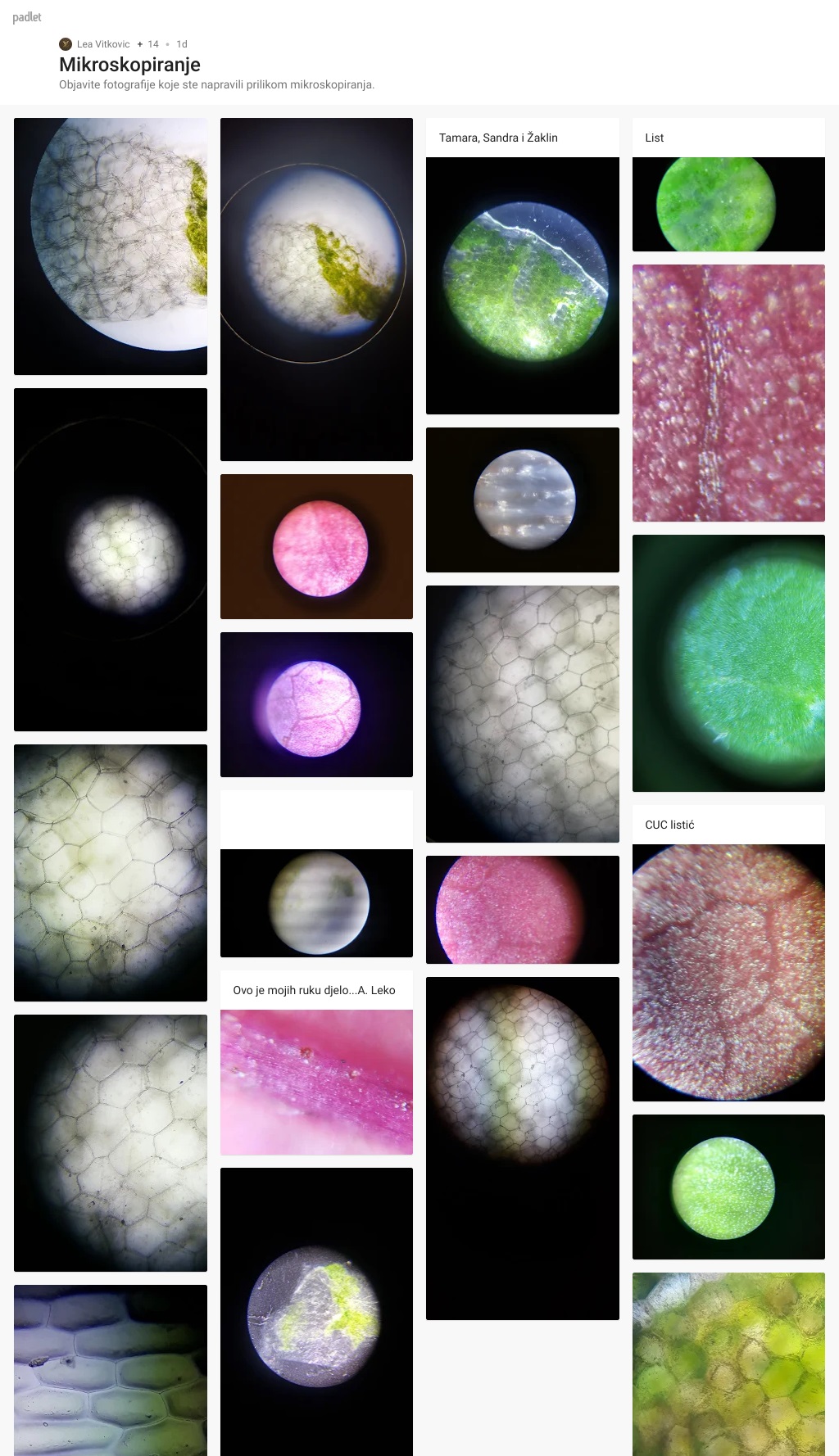 Na predmetno stakalce kapnuli su kapljicu vode. S lista su odvojili tanku pokožicu. Taj tanki prozirni dio lista stavili su u kapljicu vode na predmetno stakalce i pokrili ga pokrovnim stakalcem. Promatrali su stanice lista pod mikroskopom koristeći pametni telefon.