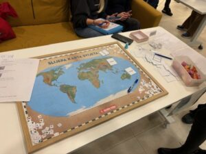 Nakon što učenici istraže podatke i izračunaju učinke svojih mjera, prelaze na slijepu kartu svijeta (bez oznaka država). Na njoj: