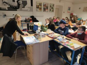 Na satu hrvatskog jezika upoznali su trojezičnost i tropismenost Hrvata te spomenike hrvatske pismenosti. Saznali su o Danu hrvatske glagoljice i glagoljštva (22.02.), o prvotisku iz 1493. g. – Misalu po zakonu rimskoga dvora, otkriću tiskarskog stroja i Johannesu Gutenbergu te njegovoj 625. godišnjici rođenja, Godini Marka Marulića. Na satu likovne kulture zadatak je bio izraditi glagoljicu u tehnici GRATAŽ, a kao završni rezultat rada je kraća animirana forma izrađenatehnikom stop animacije u aplikaciji STOP MOTION STUDION. Nastali su likovni uradci – prava umjetnička djela koja se mogu vidjeti u izložbi stvorenoj u aplikaciji Emaze. Animacija (Stop Motion Studio), Izložba (Emaze). Više informacija se može pronaći na mrežnoj stranici škole.