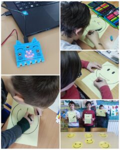 Umjesto upoznavanja s temom kroz standardne prezentacije, učenici su se okušali u igri o vrstama smijeha kroz programiranje uz pomoć micro:bita. Kako bi dodatno potaknuli svoju maštu i kreativnost, učenici su se i posvetili pisanju izreka o smijehu, izradi smajlića koje su zatim stavljali na svoja vesela lica i pričali međusobno viceve.