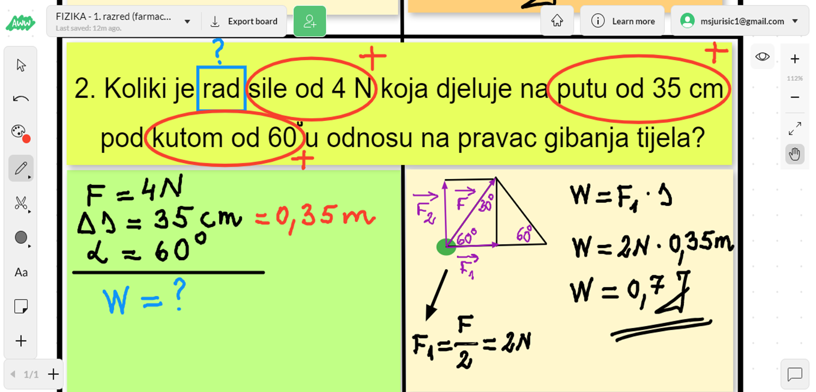 Jedan od načina kako motivirati učenike u nastavi na daljinu je korištenje različitih tehnika poučavanja uz primjenu digitalne tehnologije. Vrlo uspješnom pokazala se insert tehnika. Tehnika čitanja koja započinje pretraživanjem predznanja i postavljanjem pitanja. Učenici koriste različite, unaprijed dogovorene, oznake u skladu sa vlastitim znanjem i sposobnostima. Vrlo uspješno se može primijeniti u numeričkim zadacima iz fizike. U primjeru (slika 1.) je navedeno kako učenik s teškoćama koristi oznake “+” za fizičku veličinu koja je u zadatku zadana, a oznaku „?“ za veličinu koju mora izračunati. U nastavi na daljinu ova tehnika se može uspješno koristiti uz pomoć digitalnog alata AWW – A web White Bord.