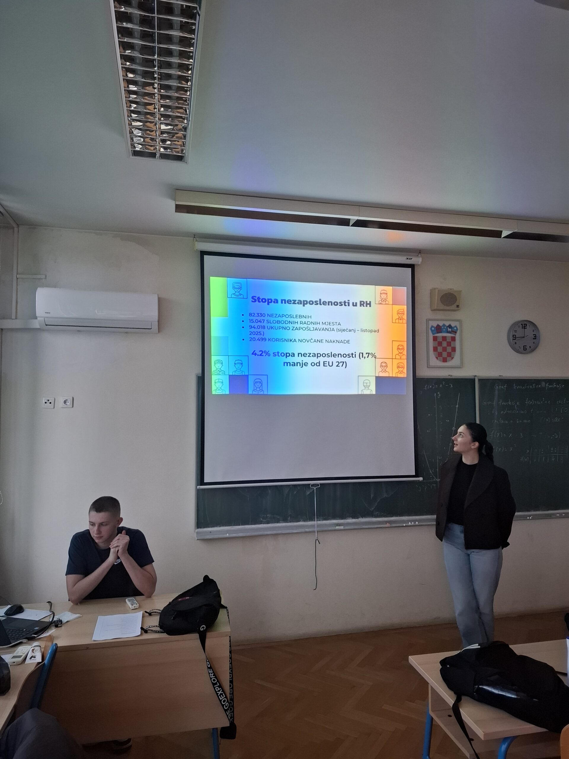 Prva skupina bavila se analizom službenih statističkih podataka Državnog zavoda za statistiku i Eurostata. Učenici su istraživali stope nezaposlenosti mladih u dobnoj skupini od 18 do 25 godina, pratili promjene kroz više godina te uspoređivali Hrvatsku s prosjekom Europske unije.