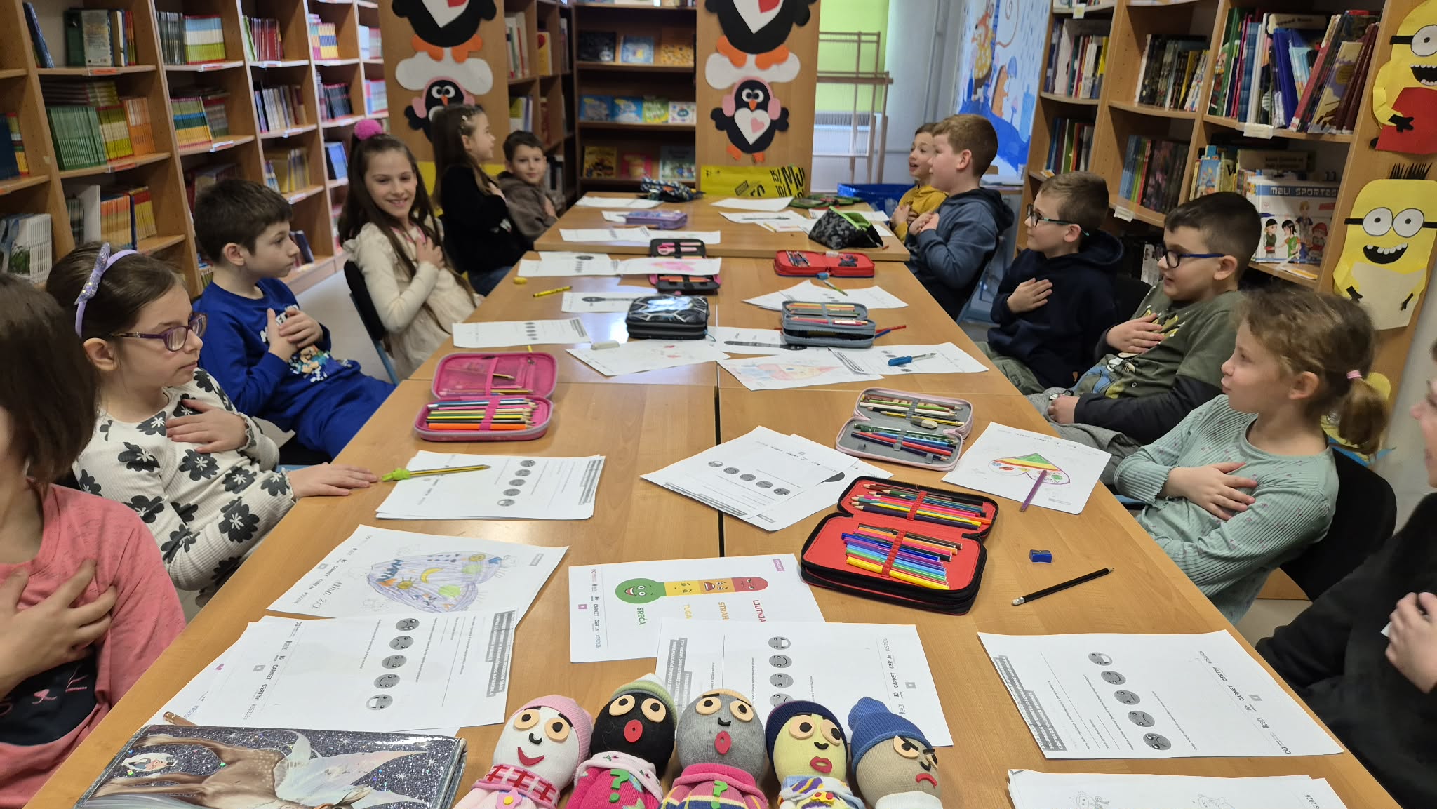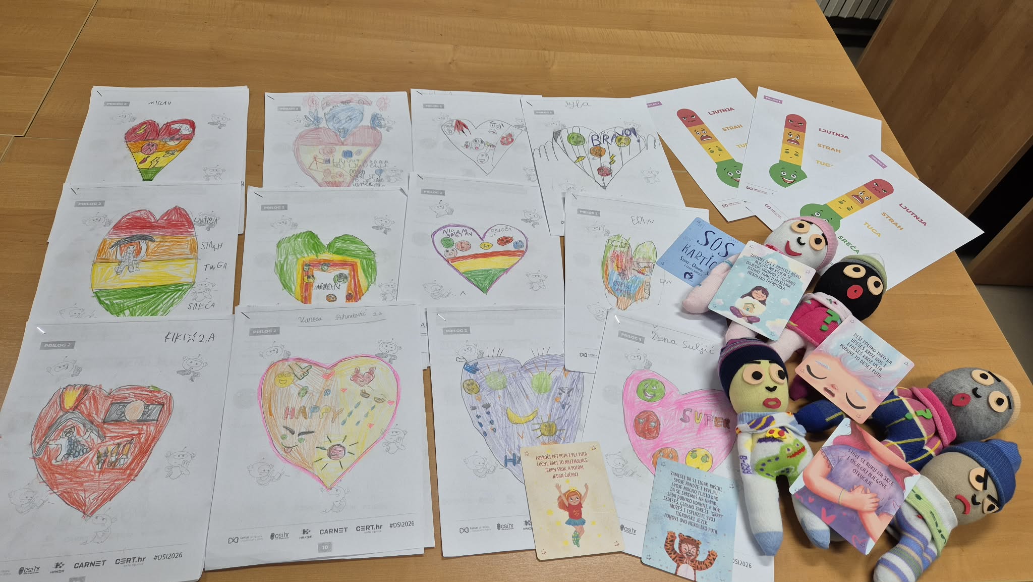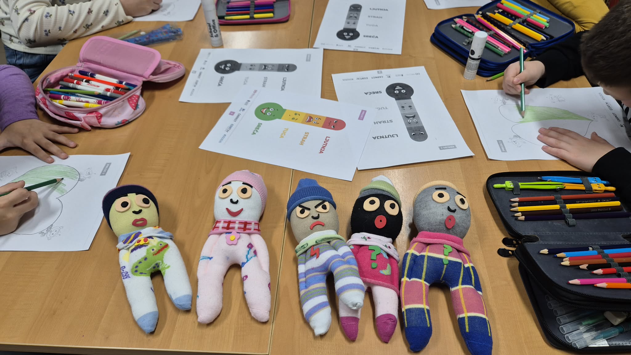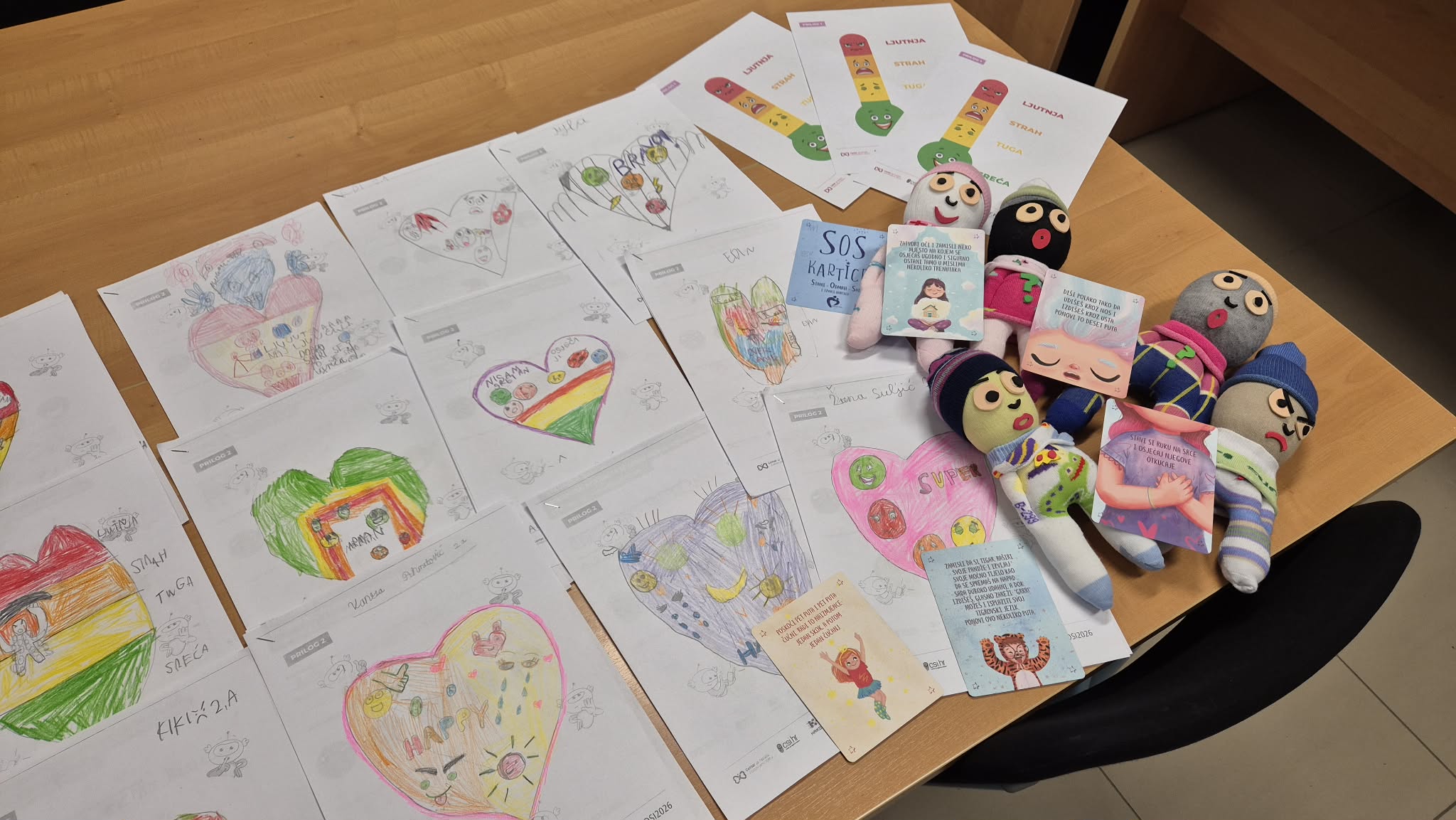 Tijekom radionice učenici su koristili EMOSO lutke iz priručnika „Vreća emocija“, koje su im pomogle u prepoznavanju i izražavanju različitih osjećaja, ali i SOS kartice „Stani – Odmah – Sad“ iz „Vježbaonice sreće“.