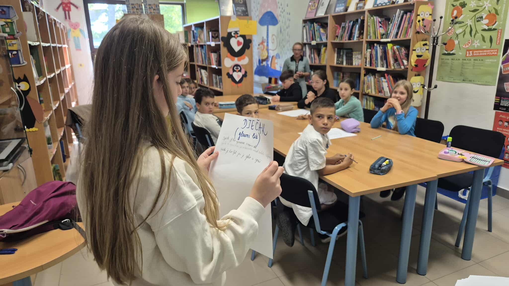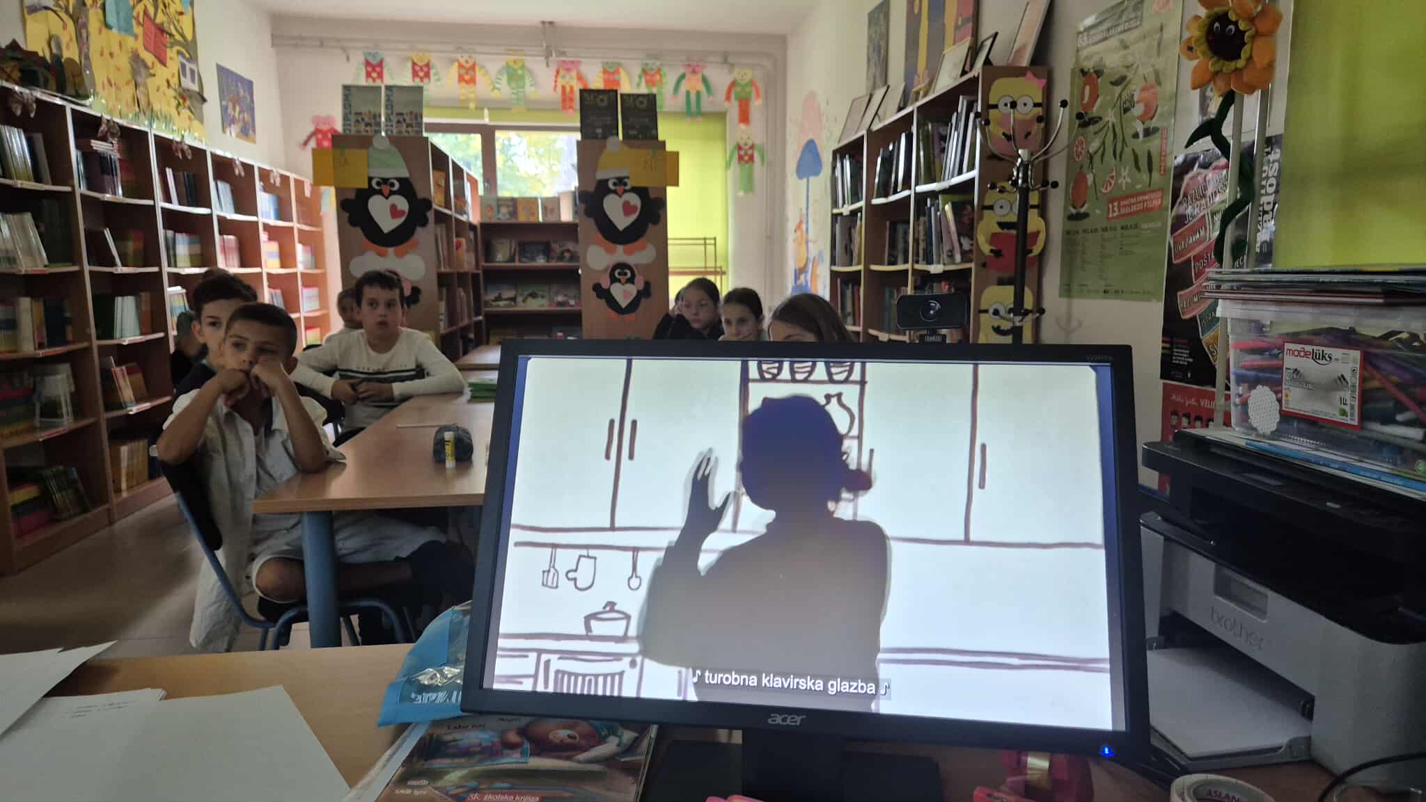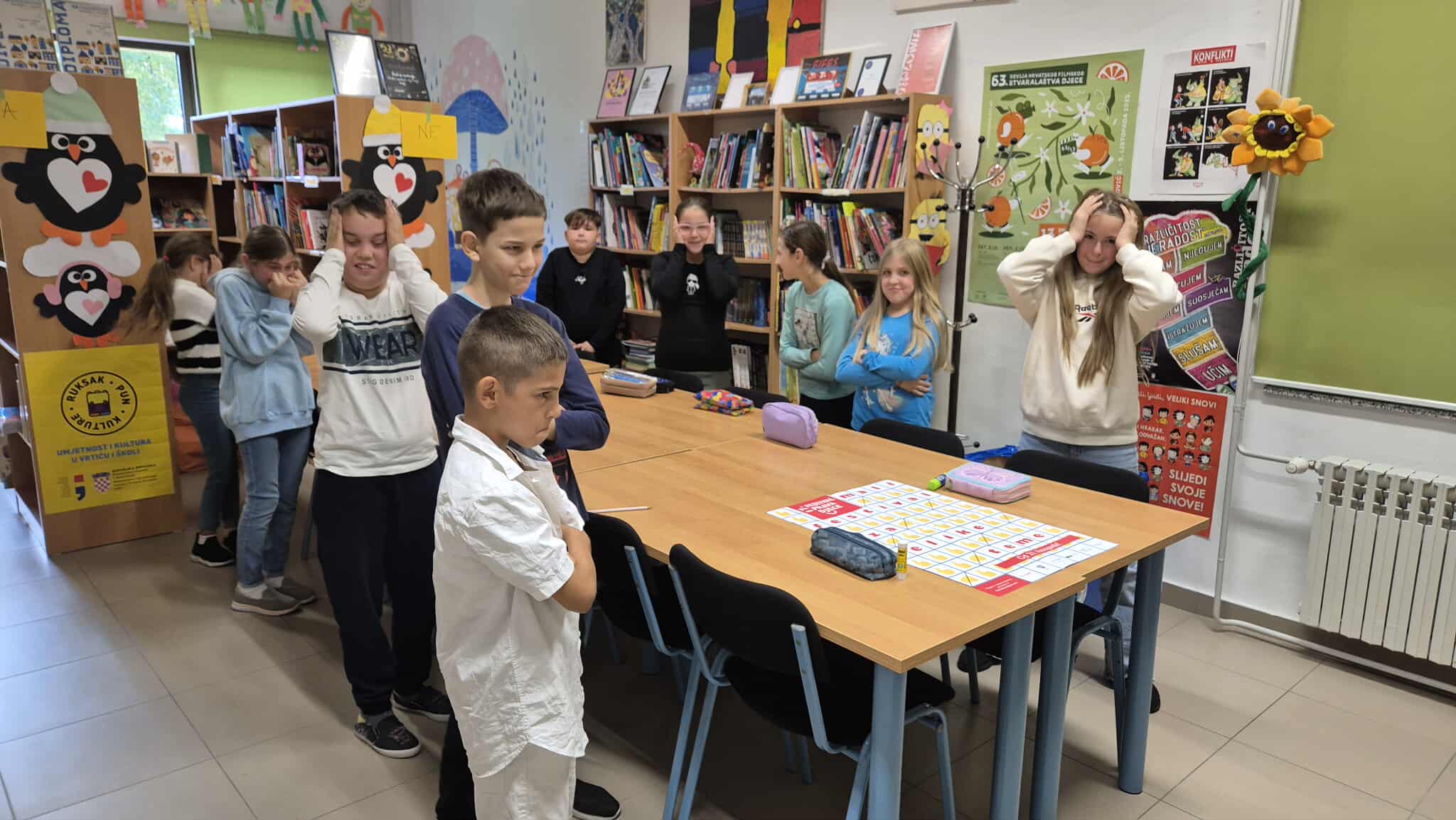 Prije gledanja filma „Igra izvan ekrana“ u trajanju od sedam minuta, učenici su sudjelovali u zanimljivoj anketi uživo. Na jednu stranu knjižnice bio je zalijepljen papir s natpisom „Da“, a na drugu stranu papir s natpisom „Ne“.
