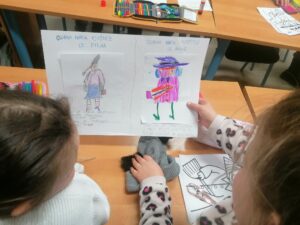 Sljedeći zadatak odnosio se na izradu dvije osobne karte lika vještice. Jedna osobna karta bila je za vještice u bajkama, a druga za lik vještice iz filma. Na komad papira, u lijevi ugao učenici su crtali lik vještice (iz bajke), a u desni ugao lik vještice (iz filma), a ispod toga su pisali kratke natuknice kojima opisuju lik vještice (primjerice, izgled, ponašanje i njezin govor). U konačnici, uspoređujemo likove vještica – njihove sličnosti i razlike.